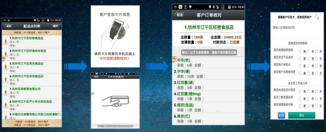 产品利用RFID、GPS、手机拍照等技术的有效结合,使用手持设备结合NFC卡,实现到货数字化签收、智能导航等功能,有效解决送货纠纷、无纸化办工、弹性送货不认路等情况。