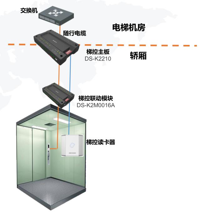 门禁权限验证、管控,电梯呼叫联动,对电梯进行开、关、常开、常关进行控制。